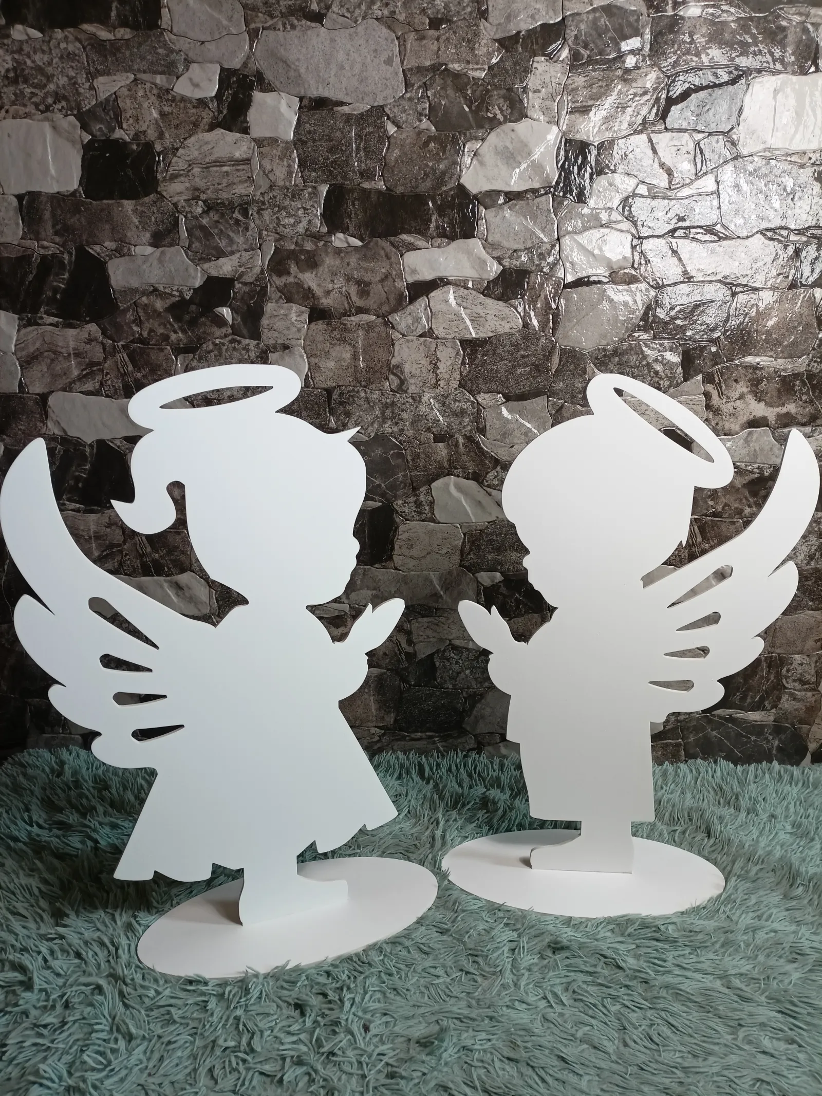 Dekoracyjne aniołki chłopiec i dziewczynka ze sklejki – idealne do dekoracji kościoła i ścianki balonowej