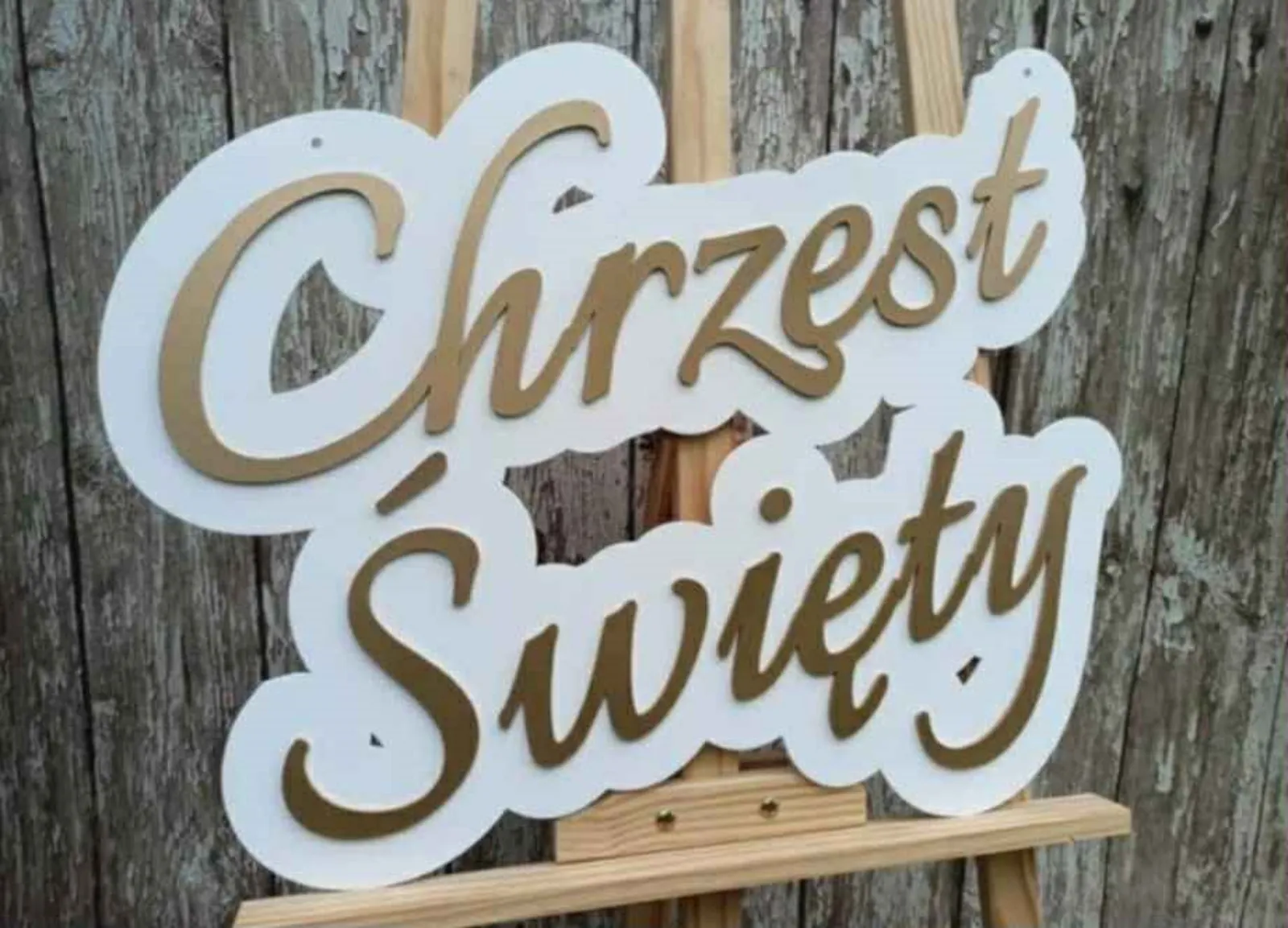 Szukasz alternatywy dla ledonów czy neonów? Przedstawiamy piękny napis na ściankę „Chrzest Święty” o szerokości 60 cm, który świetnie wkomponuje się w każdą aranżację ścianki dekoracyjnej na tę okazję.