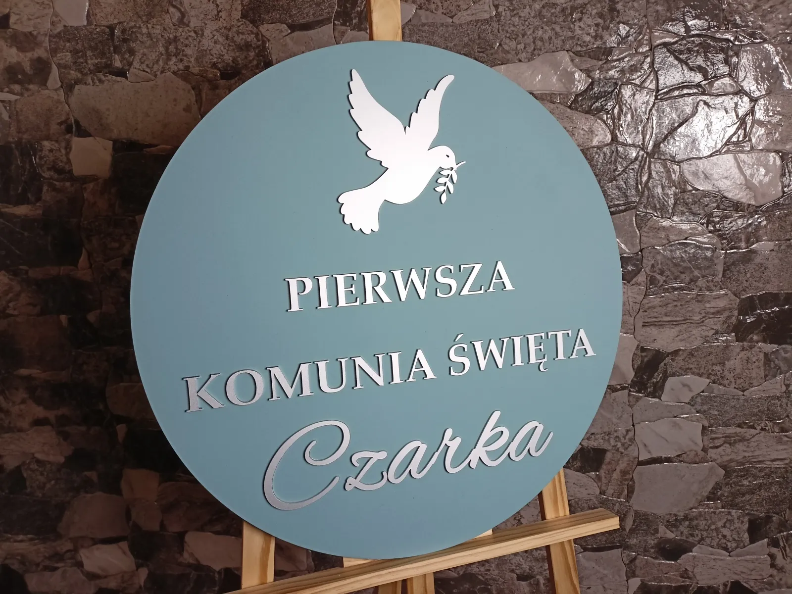 Personalizowana tablica na Pierwszą Komunię Świętą dla chłopca w pięknym, nietuzinkowym, błękitnym kolorze.