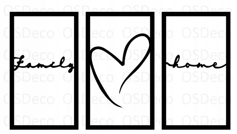 AŻUROWA DEKORACJA ŚCIENNA – OBRAZ – TRYPTYK Z NAPISEM FAMILY HOME I SERCEM