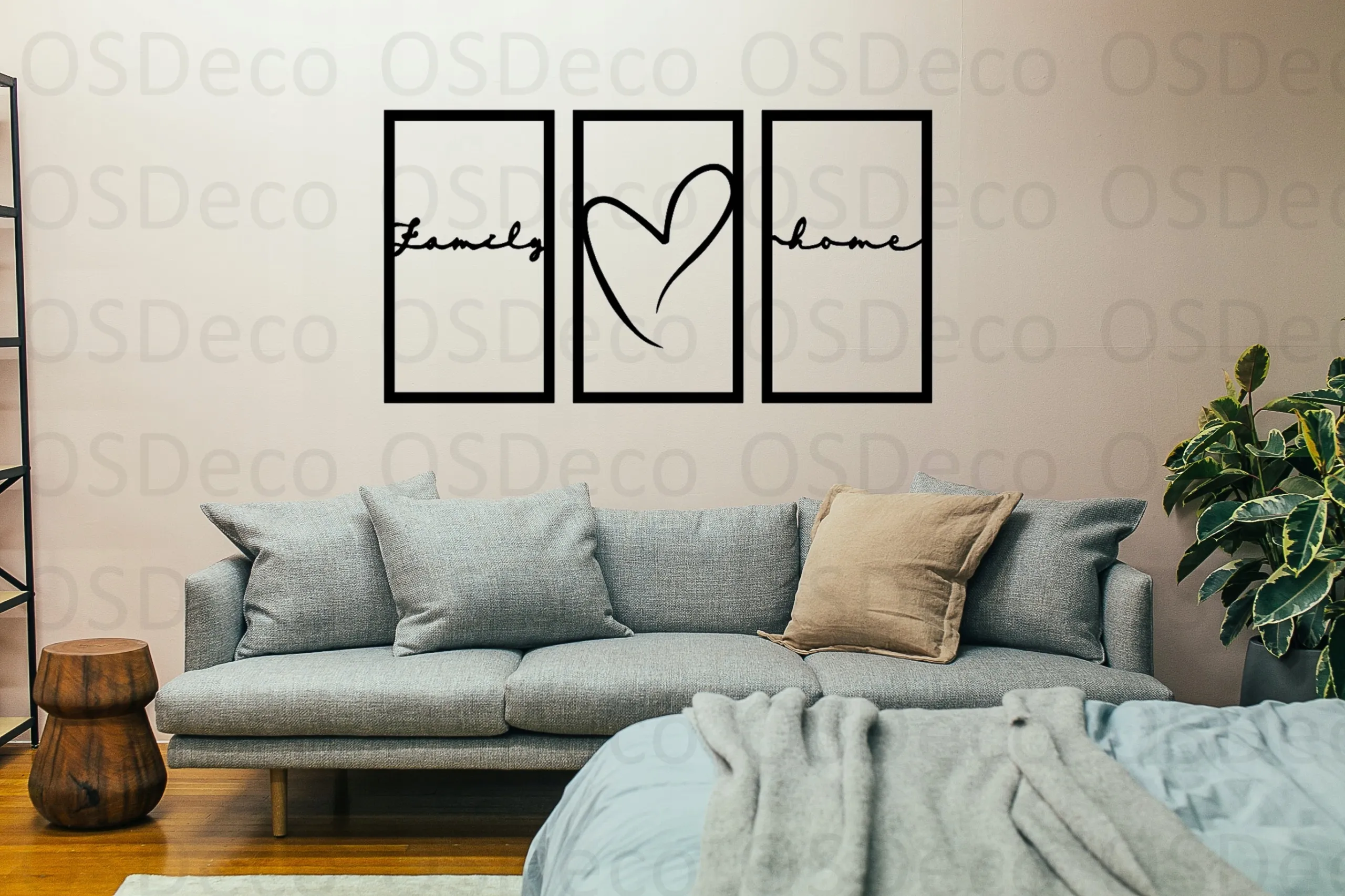 Nazwa produktu E111 – DEKORACJA ŚCIENNA 3D – OBRAZ TRYPTYK Z NAPISEM FAMILY HOME I SERCEM